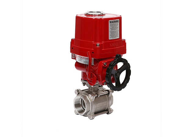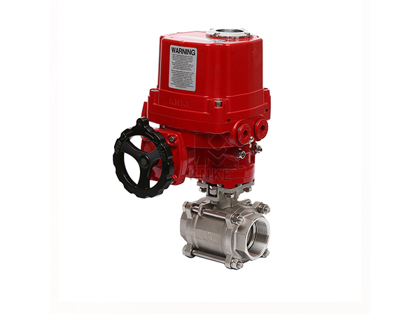 电动三片式螺纹球阀,Electric three piece threaded ball valve,是指采用三片式不锈钢内螺纹或者焊接球阀作为阀门部分,电动执行器部分采用188彩票KNKE的开关型或者调节型电动头的控制单元。电动三片式球阀采用一体化结构,与KECS系列执行器机构配套,输入控制信号(4~20mA或1~5VDC)及单向电源即可控制运转,具有功能强、体积小、轻便宜人、性能可靠、配套简单、流通能力大、该阀特别是适合于介质粘稠、含颗粒、纤维性质的场合。目前该电动调节蝶阀广泛应用于食品、环保、轻工、石油、造纸、化工、教学和科研设备、电力等行业的工业自动控制系统中。