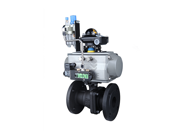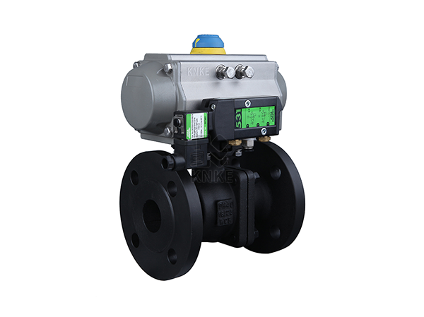 气动碳钢法兰球阀,Pneumatic carbon steel ball valve,是指由188彩票KNKE气动执行器和碳钢法兰球阀组成的气控阀门。通过装配电磁阀、限位开关、过滤器、定位器等气动配件,可以远程端控制阀门的快速开关及调节。广泛适用于天然气、油品、化工、冶金、造纸、电力、矿业、印染、生物制药、日用化工,食品材料,水处理及空气处理等行业的流体自动控制或调节控制,与自动化仪表配套使用。