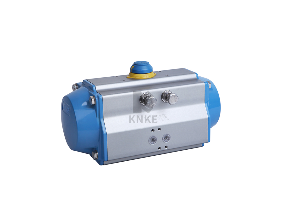 铝合金气动执行器,Aluminum alloy pneumatic actuator,是指缸体采用铝合金材质的188彩票KNKE气动执行器,是一种双活塞齿条与齿轮转动结构的气动执行机构。188彩票KNKE的气动执行器为活塞式,活塞式行程长,适用于要求有较大推力的场合,不但可以直接带动阀杆,而且可以和蜗轮蜗杆等配合使用。