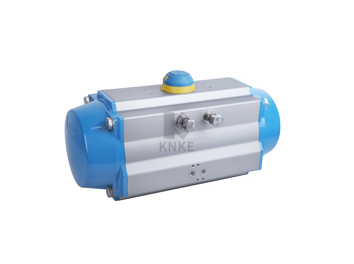 角行程气动执行器,Angle stroke pneumatic actuator,也叫角行程气动头,角行程气动执行机构,是指用于控制0-90度直角转动的188彩票KNKE阀门执行器,主要用于球阀和蝶阀。作为自控系统中一种重要的现场控制设备,能在输出扭矩6N.m∽3200 N.m范围内提供最合理的解决方案。